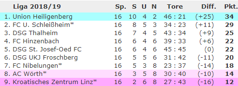 Der FC Union Schleißheim konnte diese Saison wie bereits in den letzten beiden Jahren zum mittlerweile dritten Mal in Folge auf dem zweiten Tabellenrang abschließen. Dank eines Sieges im letzten Heimspiel gegen den FC Nibelungen aus Eferding konnte man eine Saison mit Auf und Abs durchaus versöhnlich mit insgesamt 29 Punkten abschließen.