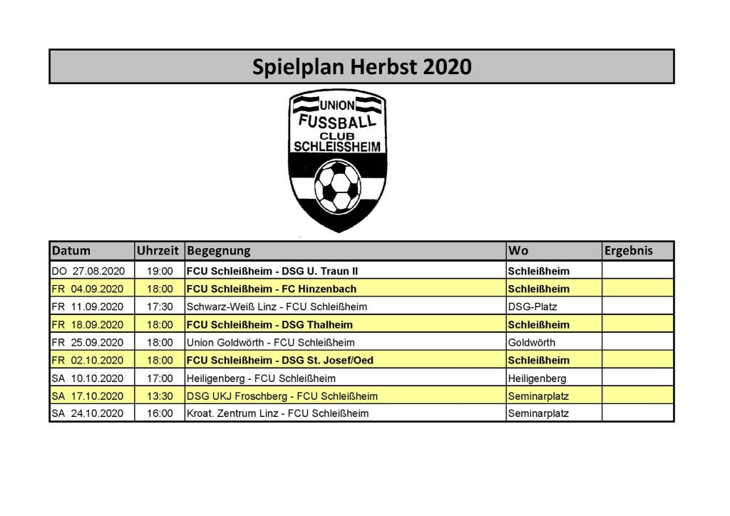 Bevor es jedoch um Punkte geht, schließen wir unsere Vorbereitung am Fr. den 21.8 um 19 Uhr noch mit einem Testspiel ab. Wie es der Zufall so will, ist unser Gegner auch in dieser Partie DSG U. Traun II.