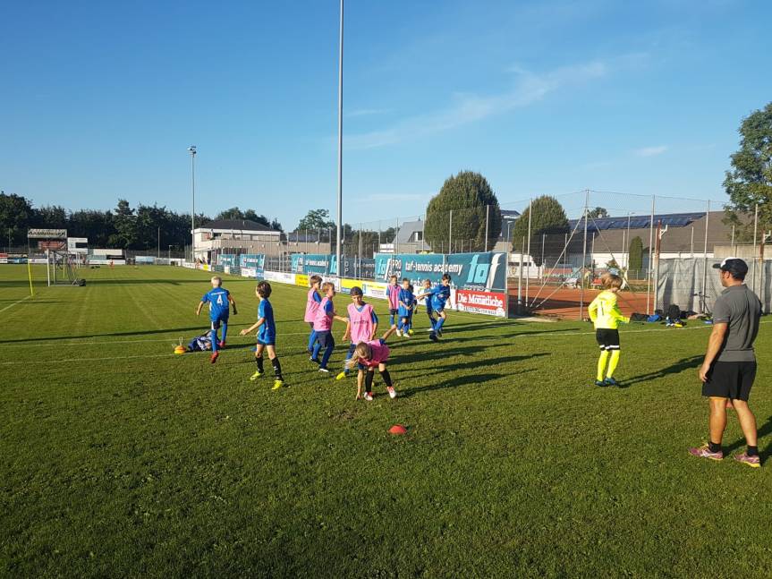 Das Training, wo zwischen 10 – 20 Mädchen und Burschen im Alter von 5 bis 11 Jahren beinhaltet Techniktraining, das mit Spaß in Form von Spielen vermittelt werden sowie koordinative Übungen.